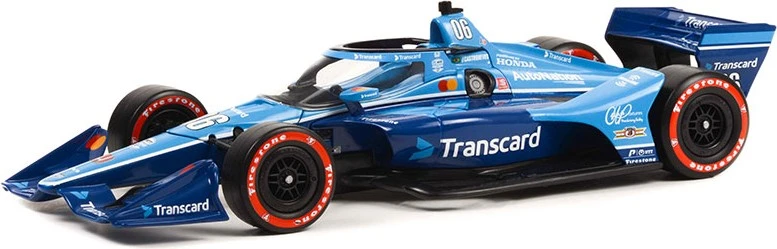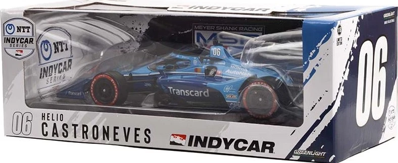 This is the #06 Hello Castroneves 2021 NTT IndyCar Series Meyer Shank Racing / Transcard (Road Course Configuration) in 1:18 scale by Greenlight.