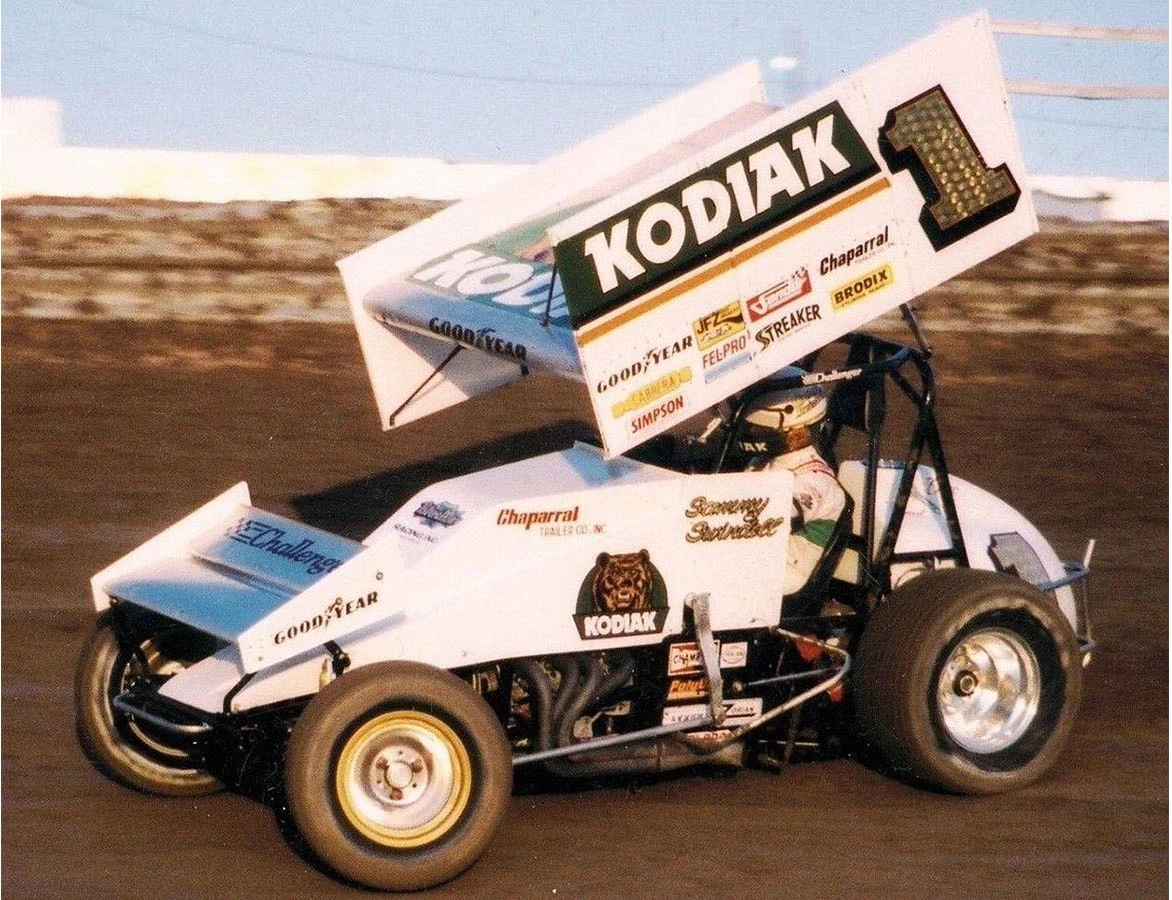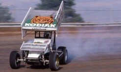 The original Kodiak Special was a Stanton/Challenger 1 5/8” tube chassis that became known as the “Big Tube” car. Sammy drove this car during the 1987 season, and the engine was one of four special Pontiac powerplants provided by Sammy’s car owner, Raymond Beadle. It was one of the last hand-painted cars which ran on the World of Outlaws circuit. Swindell won 16 features during 1987 including the Spring Nationals, Devils Bowl, Mesquite, Texas; Winter Nationals, Devils Bowl.