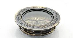 Set of two functional elegant pieces: a 100 year Calendar and a Compass Quote. The calendar features a brilliant way to track for dates starting from the year 2000 to 2099. The calendar features authentic hand carved and painted numbers and drawings on it. The compass on the other hand features a beautiful quote “A journey of a thousand miles must begin with a single step”. Both items are made of high quality brass with each component is crafted using the finest craftsmanship. They are available in antique brass finish and are shipped together in one package. Together both would make a great addition to any nautical collection.