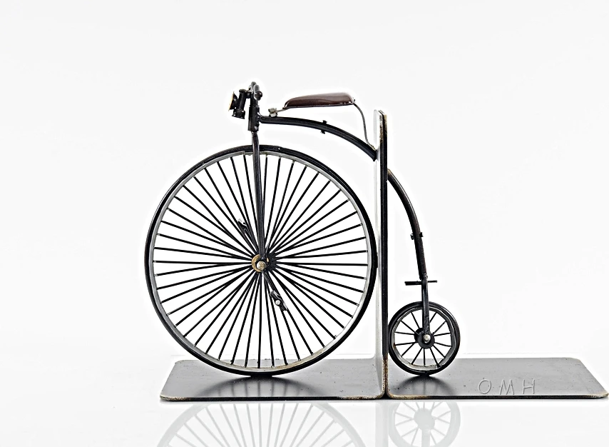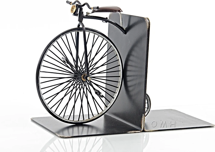| Hold your favorite books between this unique vintage 1870 High Wheeler model. It features intricate details such as iron spoke wheels, seat, light weight frame, and pedals. These bookends add a touch of class to any office or study. It will surely spark up a conversation! |