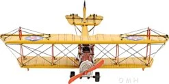 The Curtiss JN-4 “Jenny” was one of a series of “JN” biplanes built by the Curtiss Aeroplane Company of Hammondsport, New York. This fighter bi-plane was one of the most capable, faster and stronger than many of its contemporaries. This replica model of the Curtiss Jenny is handmade on a scale of 1:24. It features iron frame, wire accents, propeller and wheels. A must have for the collector and enthusiast!