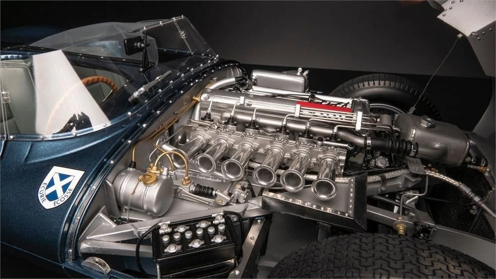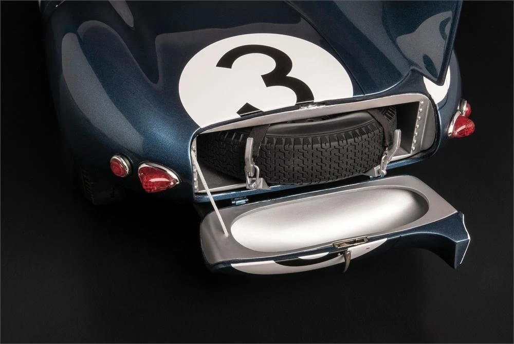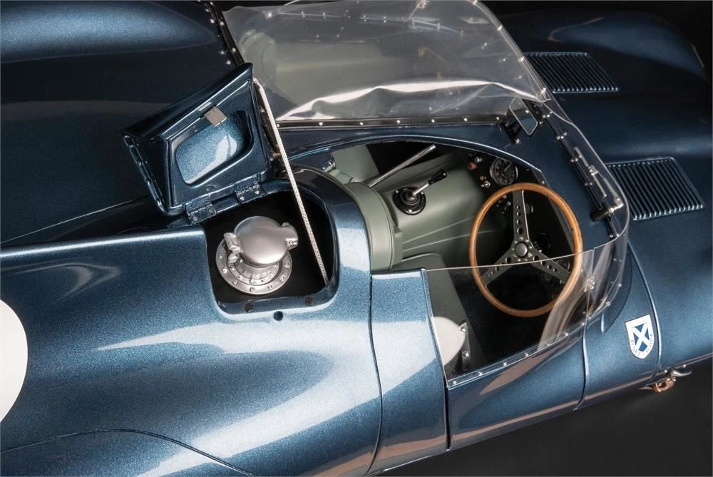 This model is a perfect 1:8 scale recreation of the 1957 Le Mans winning D-Type, as raced to victory by British duo Ron Flockhart and Ivor Bueb. It has been handcrafted and finished in our workshops with the co-operation and assistance of Jaguar regarding original finishes, materials, archive imagery and drawings. The use of supremely accurate digital scanning of the original car has allowed us to perfectly recreate every detail at scale. Furthermore, it has undergone detailed scrutiny by both engineering and design teams to ensure complete accuracy of representation.