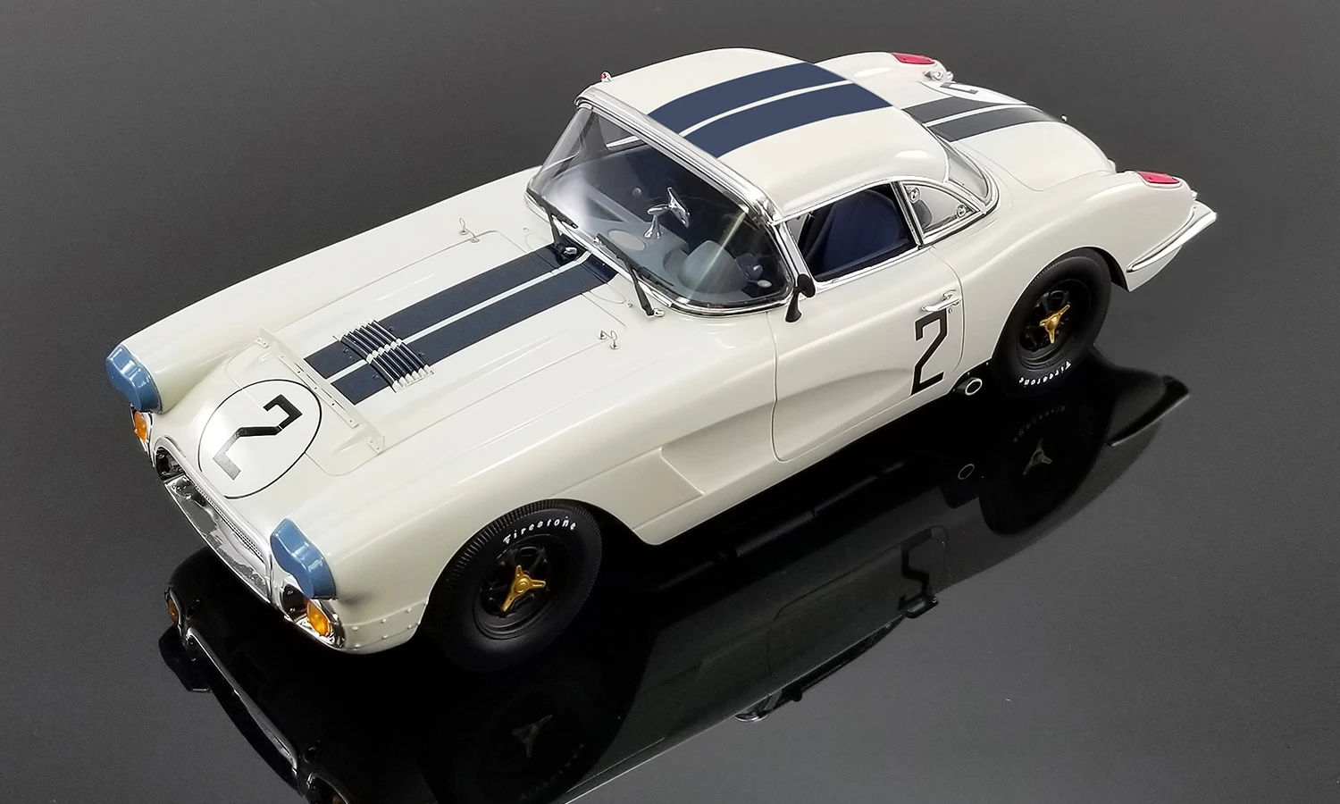 This is the 1960 Chevrolet Corvette 24 Hours of Le Mans 1960 #2 Thompson/Windridge in 1:18.