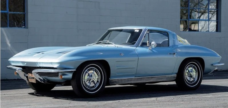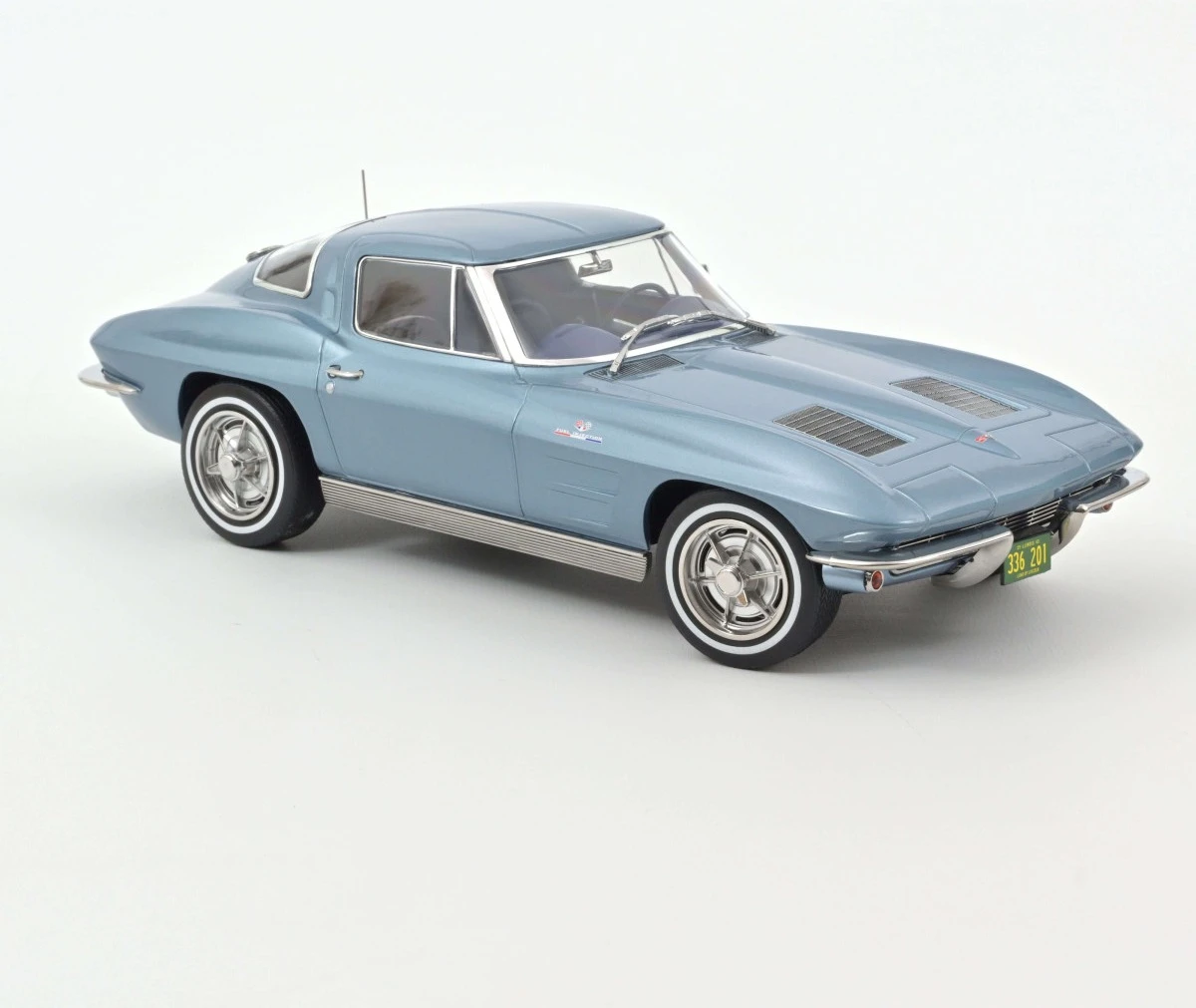 This is the 1963 Chevrolet Corvette Sting Ray Light Blue Metallic in 1:18 scale by Norev.