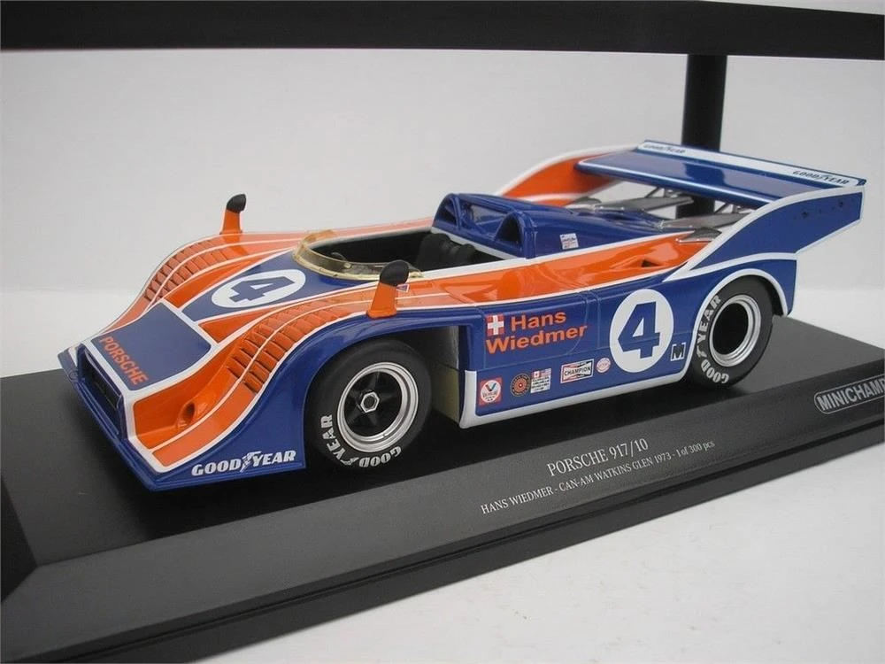 This is the PORSCHE 917/10 Driver HANS WIEDMER Race CAN-AM WATKINS GLEN 1973 L.E. 300 pcs Diecast Model / No Openings in 1:18 Scale by Minichamps.