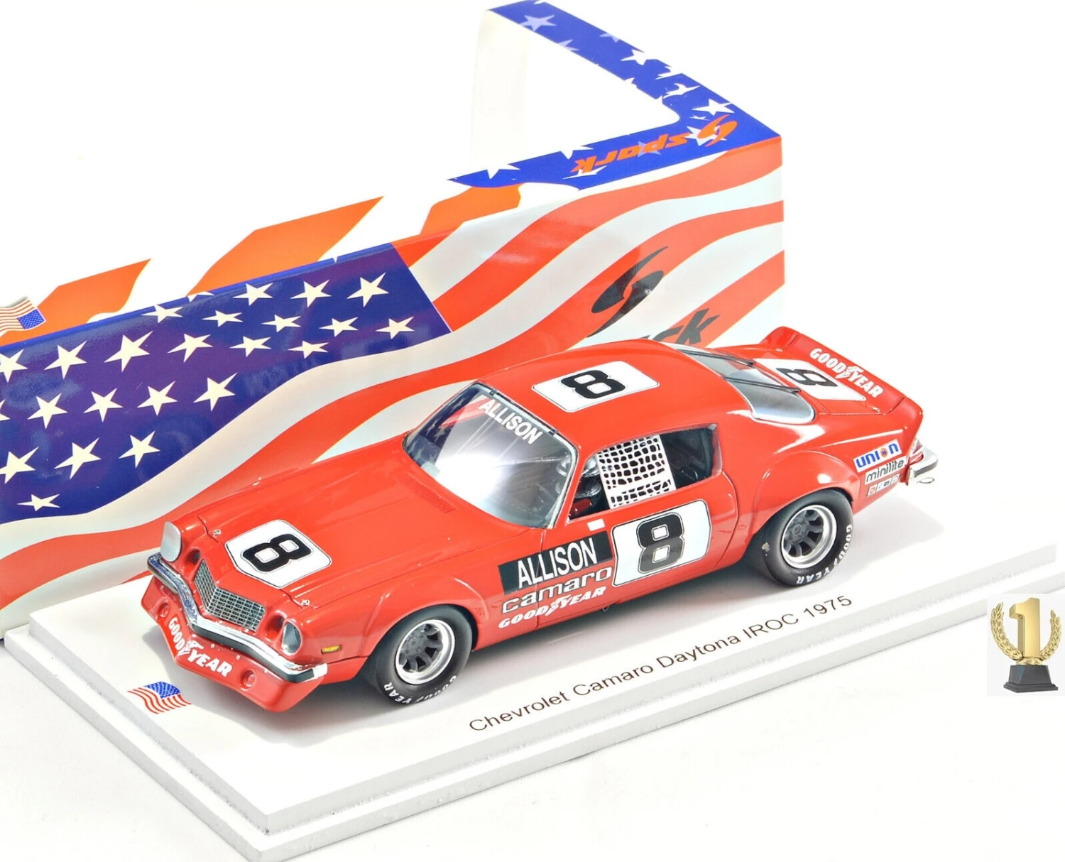 This is the 1974/1975 Chevrolet Camaro No. 8 Daytona IROC Bobby Allison 1:43 scale