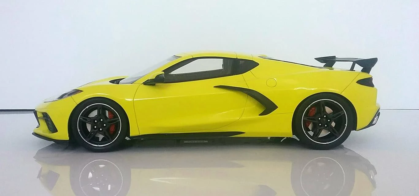 This is the 2020 Chevrolet Corvette Stingray Accelerate Yellow Metallic in 1:18 Scale by Topspeed.
