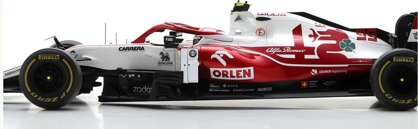 This is the 2021 ALFA ROMEO RACING ORLEN C41 #99 BAHRAIN GP ANTONIO GIOVINAZZI in 1:18 scale by Spark.