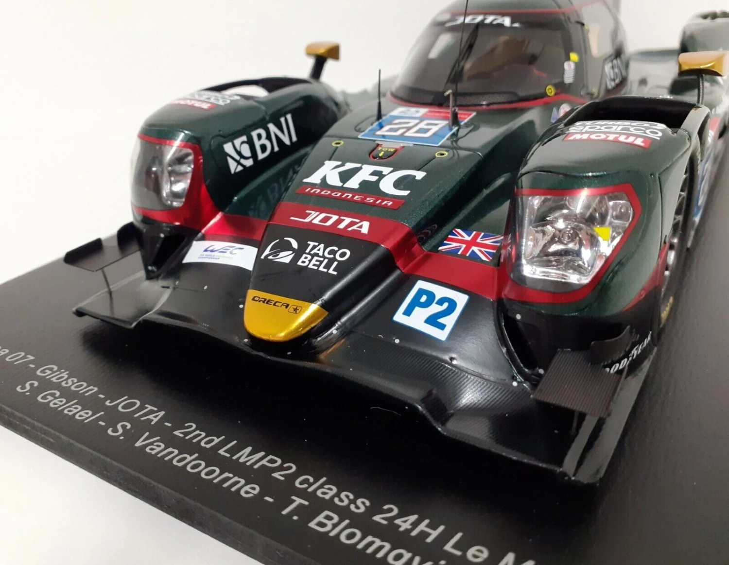This is the 2021 ORECA 07 GIBSON #28 JOTA 2ND LMP2 CLASS 24H LE MANS in 1:18 scale by Spark.