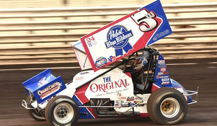 This is the 2022 #5W PABST BLUE RIBBON SPRINT CAR LUCAS WOLFE in 1:18 scale by Acme.