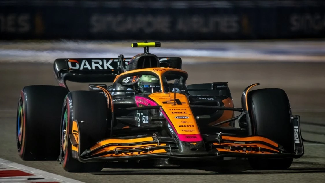 This is the 2022 MCLAREN F1 TEAM MCL36 LANDO NORRIS SINGAPORE GP in 1:43 scale by Minichamps.