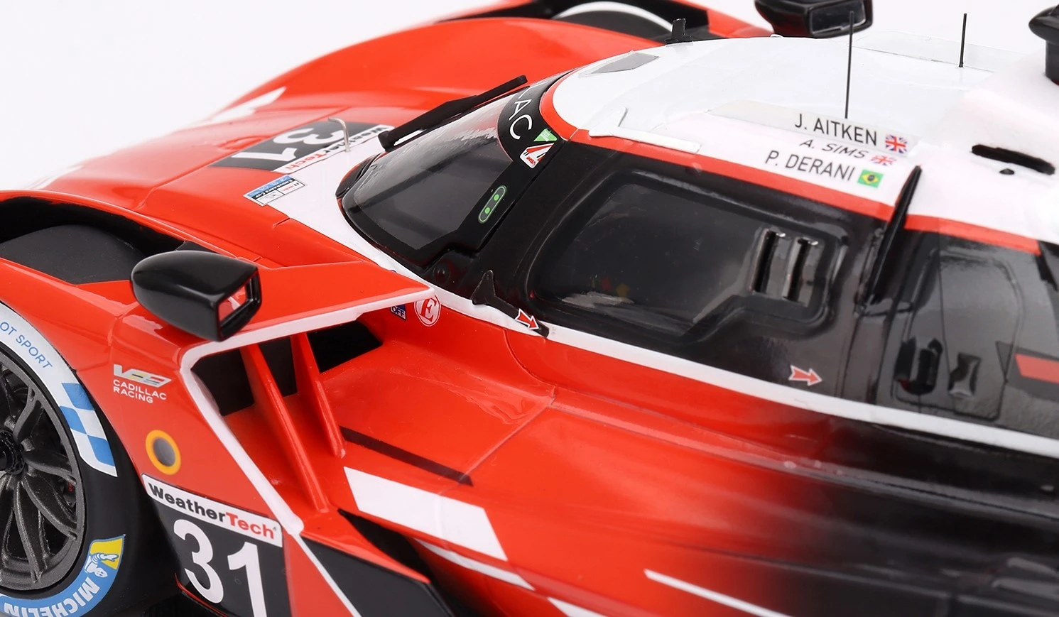 This is the 2023 Cadillac V-Series.R #31 Action Express Racing IMSA Sebring 12 Hrs Winner in 1:18 scale by Topspeed.