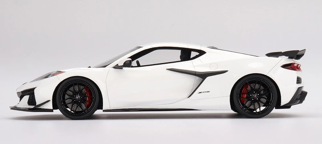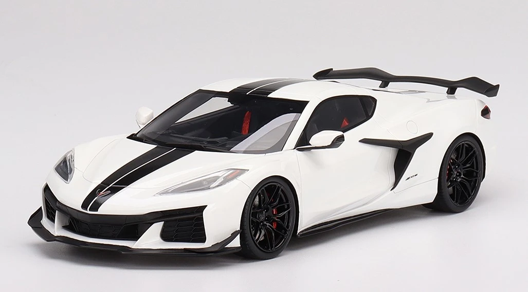 This is the 2023 Chevrolet Corvette Z06 Arctic White in 1:18 scale by Topspeed.