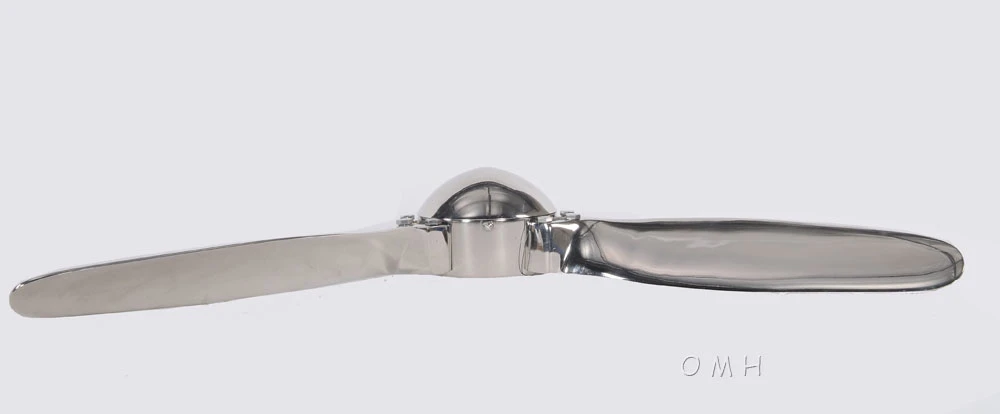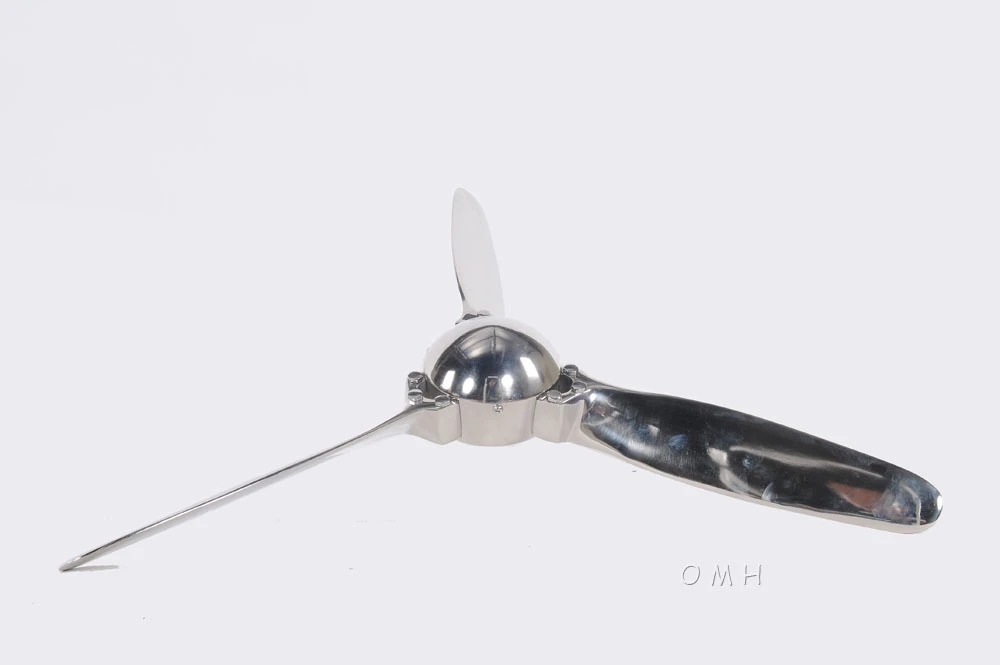 Nothing captures the spirit and nostalgia of the past like this timeless 3-blade aluminum propeller. At approximately 24 inches long, this decor piece is perfect for an aviation expert or collector. This 3-blade propeller is handsomely crafted from aluminum and topped with a nickel-plated finish. It has a neat wall-mount slot behind the propeller’s hub and comes with hardware for an easy installation. A must-have for the collector and enthusiast!