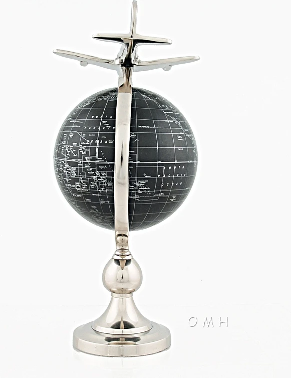 This is the Airplane On Globe W Brass Stand by Old Modern Handicrafts.