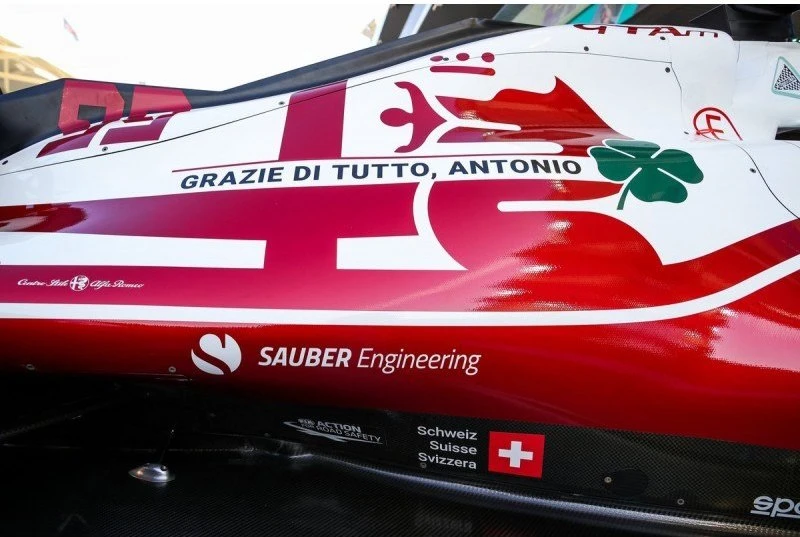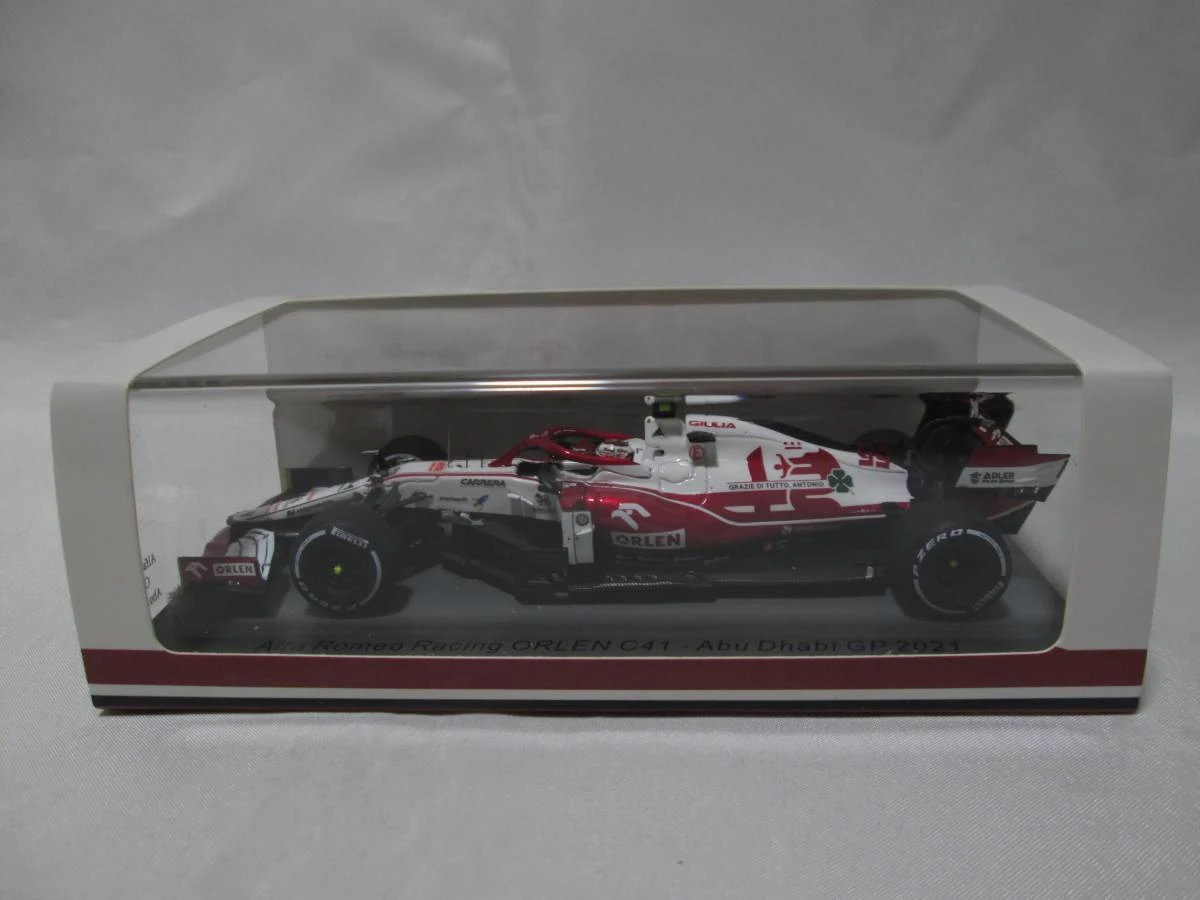This is the Alfa Romeo Racing ORLEN C41 No.99 Alfa Romeo Racing ORLEN Abu Dhabi GP 2021 Antonio Giovinazzi in 1:43 scale by Spark.