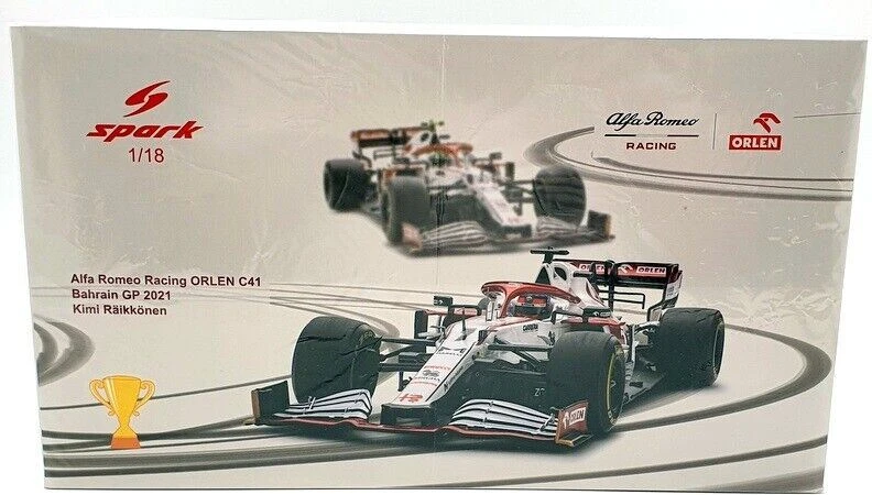 This is the ALFA ROMEO RACING ORLEN C41 #7 ALFA ROMEO SAUBER F1 TEAM BAHRAIN GP 2021 KIMI RÄIKKÖNEN in 1:18 scale by Spark.