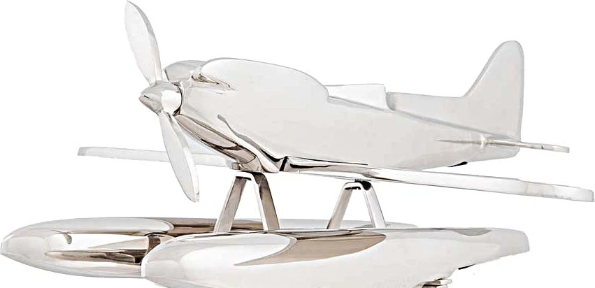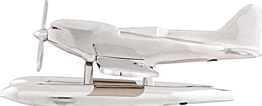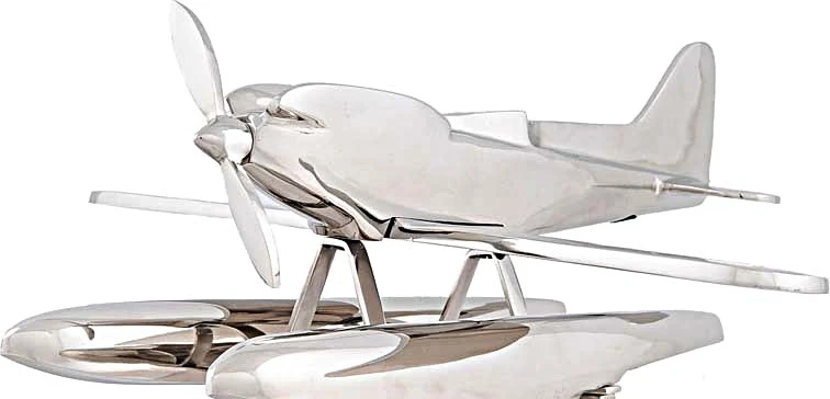A flying machine that could breeze through the clouds but also cruise along the shore became an innovative reality early in the 18th century. This aluminum seaplane will build rapport on the office desk or make a glistening decorative piece in the home.