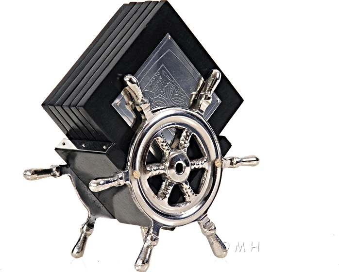 This is the Alum/ Wood Coaster On Ship Wheel by Old Modern Handicrafts.