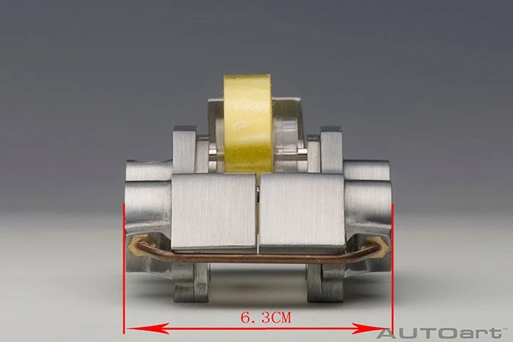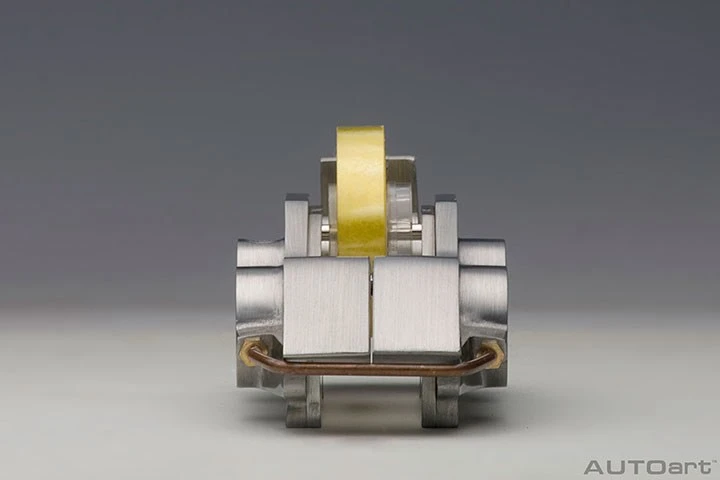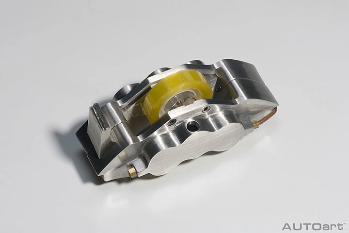 AUTOart’s engineers have taken the familiar form that peeks through the wheels of the world’s fastest automobiles and shrunk it to half the size of an actual caliper. As with our precision scale model cars, the caliper is made of solid pewter, which is totally handmade with the surface painstakingly polished by hand to create the hairline metal effect. Four large stainless-steel bolts are clamping the two halves of the caliper together.