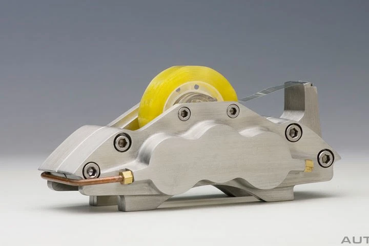 AUTOart is pleased to announce the launch of its newest desktop accessory for office car enthusiasts. If your job requires you to brake for tape, there is no better way than with this 6-pot pewter brake caliper tape dispenser designed and hand-crafted to look identical to those fitted on high-performance supercars.