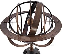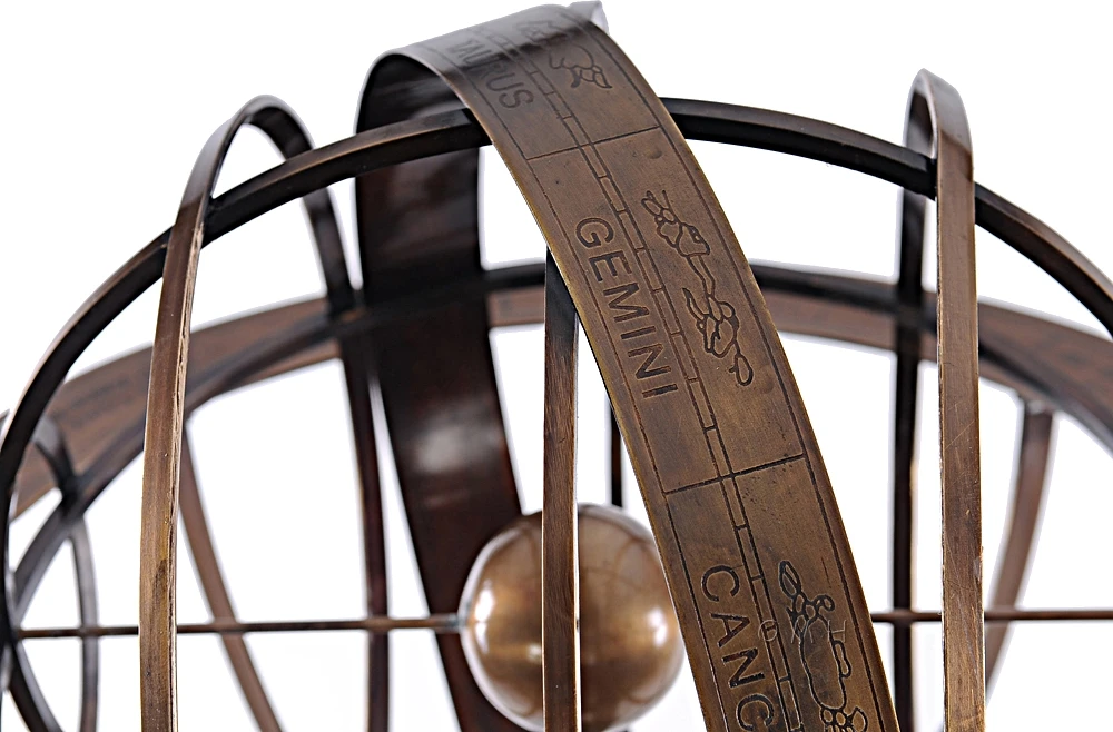 A brass armillary sundial atop an adjustable stand is the perfect antique piece. The sphere includes a band etched with zodiac signs held up by four brackets.