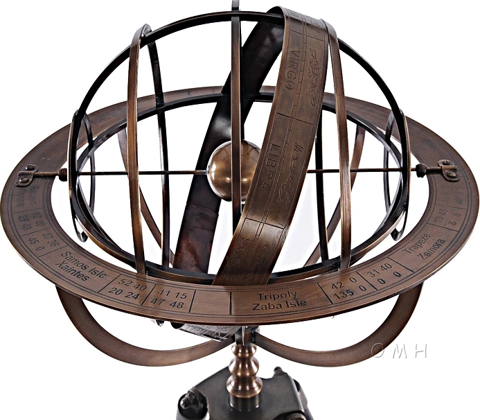 This is the Brass Armillary With Wood Stand by Old Modern Handicrafts.