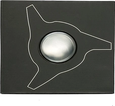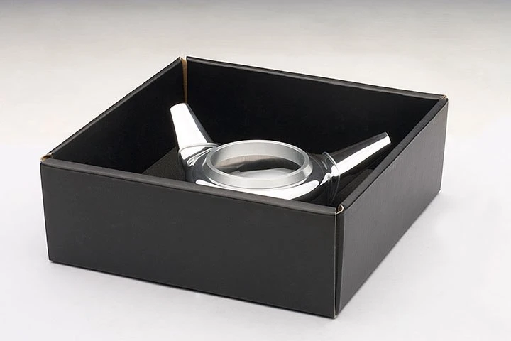 A container is made with a real size of wheel spinner which measures 5.5” (14 cm) in outer diameter. The spinner is made of aluminum casting slowly hand polished to a mirror finish. A machined aluminum lit covers tightly the opening.