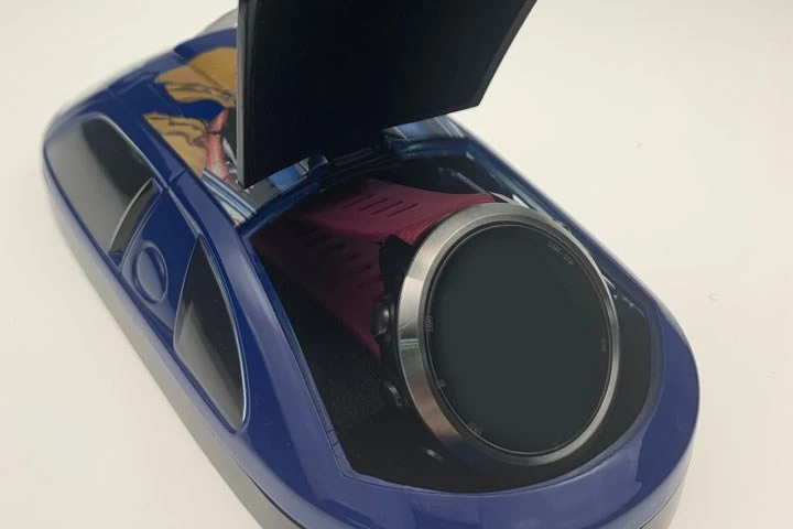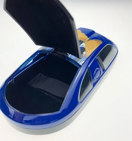 Made in the shape of a racing car cockpit with colorful livery, the rear bonnet can be raised as with a real car and sunglasses or other small items placed inside. The front and side windscreens are transparent in order to reveal the contents. This item is made of plastic and should not be placed on the car dashboard or where it may be exposed to prolonged direct sunlight.