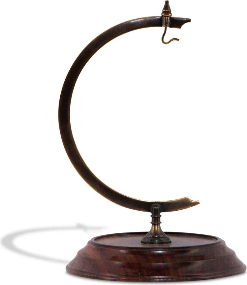 Classic sphere stands in turned wood, polished aluminum or bronzed brass.