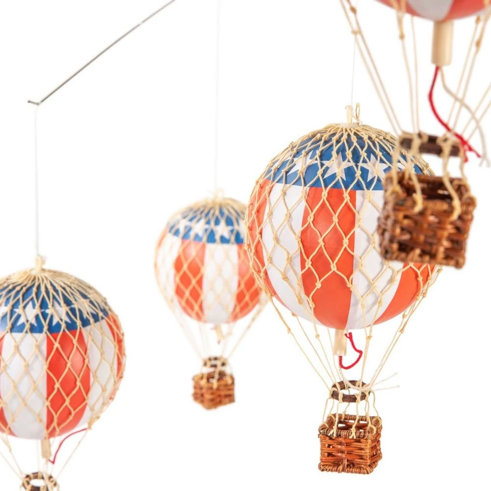 Five little balloons peacefully turning around each other. New designs with hearts, stars and US flag all hand made, easy to assemble.