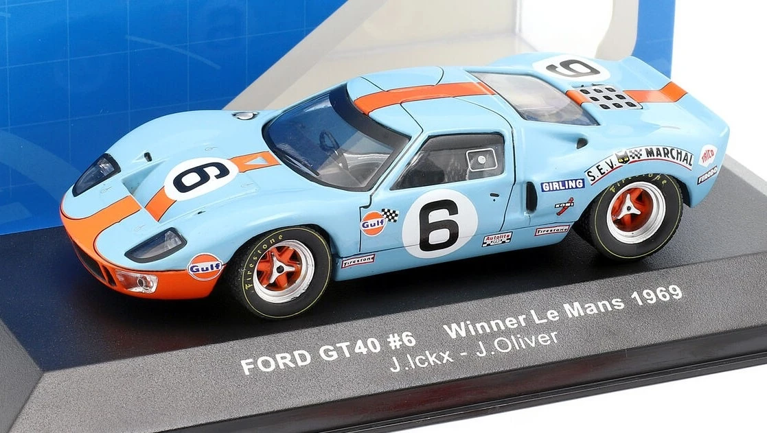 This is the FORD GT 40 GULF WINNER LE MANS 1969 in 1:43 scale by IXO.