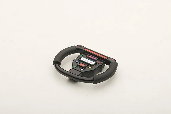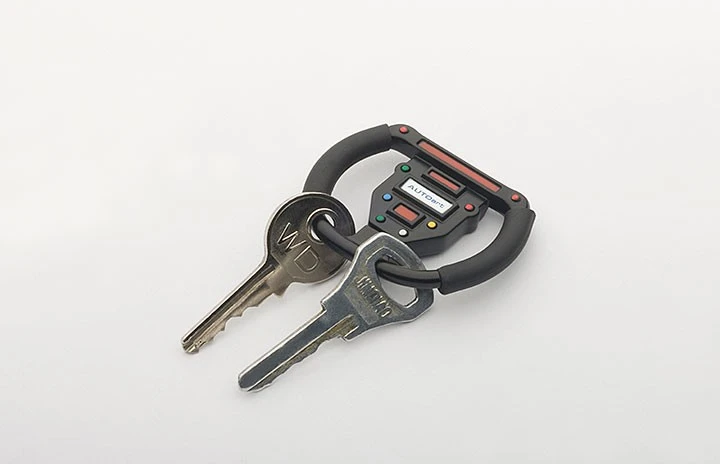 Just as today’s complex multifunction Formula steering wheels seem to do it all, the new AUTOart steering wheel personal key caddy can be a spring clip, a carabiner, a keychain, or all of the above. Perfectly sized to fall easily to hand in your pocket, the Formula steering wheel key caddy is designed to easily accept anything you need to keep safe. The lower half of the steering rim is spring-loaded. Simply pull and twist and one can fit keys, car fobs, security dongles, ID cards, a ring or wedding band you need to take remove for housework or the gym, or any small object with a hole in it. All will be safely secured to the steering wheel body, which is made of durable diecast zinc metal.
