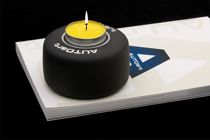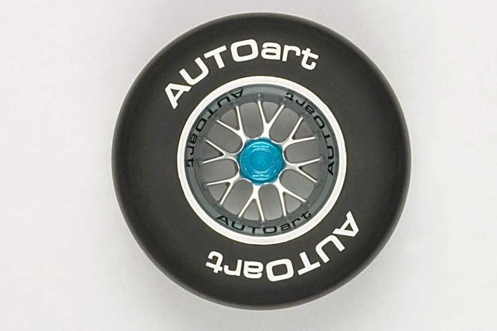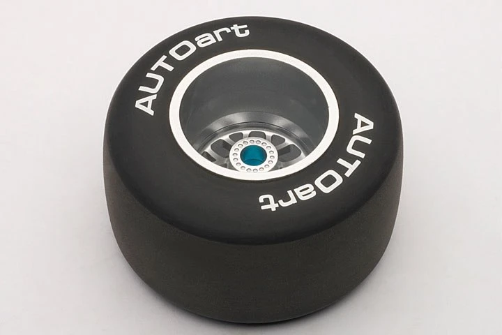This is the FORMULA WHEEL PAPER WEIGHT/TEA LIGHT CANDLE HOLDER (SLICK TYRE FITTED) in 1:8 scale by AUTOart.