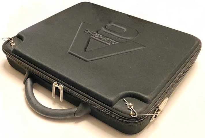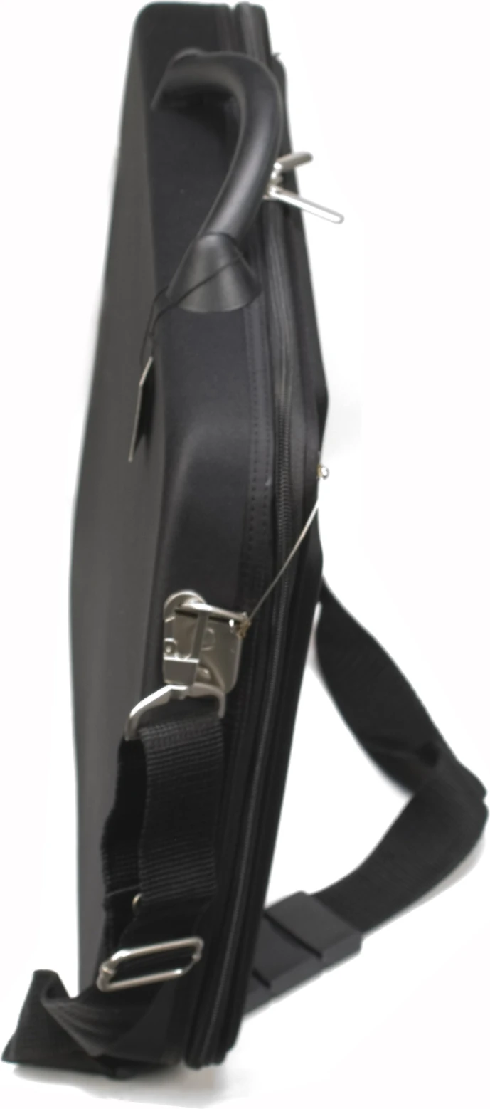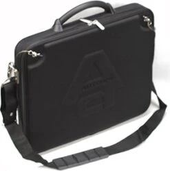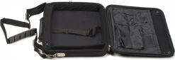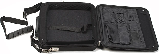 Safety pins have been used to secure the engine covers of racing cars for decades, and now they can secure your valuable collection of 1/64 model cars or laptop computer for travel with AUTOart carrying case. As with real race cars, this matte-black case made of highly impact resistant EVA foam rubber opens by removing from the metal safety pins the two spring clips tethered by stainless steel wires to the case. A shoulder strap is supplied. Get through airport security as quickly as a Le Mans pit stop and get noticed by other car enthusiasts. The case is designed to look and feel modern and high-tech and has a generous compartment size of 37cm x 28cm (14.6” x 11.0”). The case also features additional pockets for documents and electronic accessories.