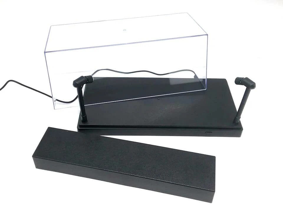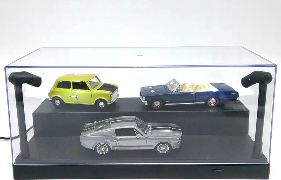 This is the 1/24, 1/43 Scale Die cast Model Car Acrylic LED Display Case with removable riser, Black by Mint Models.