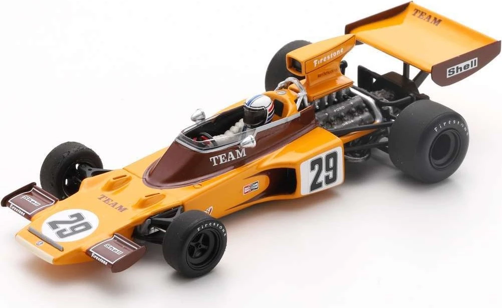 This is the LOTUS 72E NO.29 SOUTH AFRICAN GP 1974 IAN SCHECKTER in 1:43 scale by Spark.