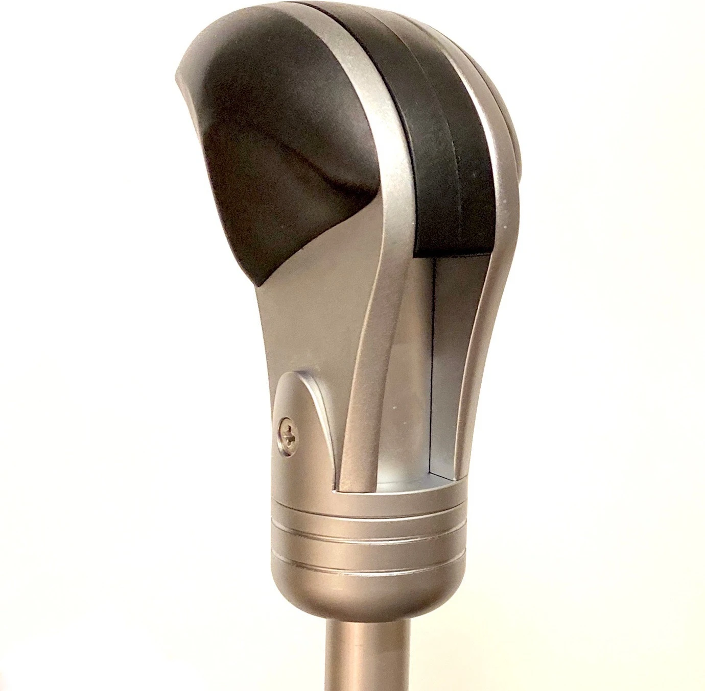 An umbrella incorporated a modular gearshift knob as the handle. The unique design modular gear knob is made of billet cut and machined aluminium with black plastic panels attached, which is detachable and can be used as a gearshift knob on car. The tip is CNC machine cut aluminium simulating the centre-lock nut of a racing wheel.