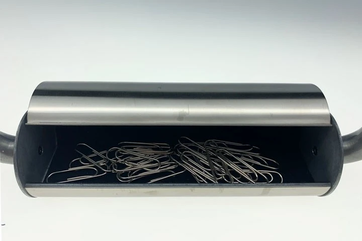 Ideal for the car-loving executive’s desktop, the twin exhaust pipes can hold pens or pencils (not included). The exhaust muffler cover can be opened for storing small items such as clips and pins. Hand-cast in fine pewter with a stainless steel cover and exhaust tips.