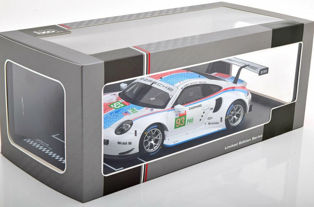 This is the PORSCHE 911 (991) RSR LE MANS 2019 #93 in 1:18 scale by IXO.