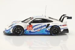 This is the Porsche 911 RSR Mentos #56 24h LeMans 2020 in 1:18 scale by IXO.