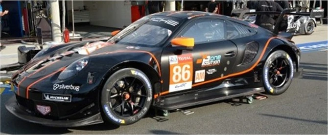 This is the Porsche 911 RSR No.86 Gulf Racing 24H Le Mans 2020 Barker/Wainwright/Watson in 1:43 scale by Spark.
