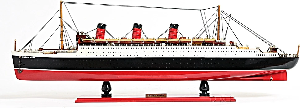 As the third largest passenger ship ever to set sail in the North Atlantic seaway, and the largest to survive, the Queen Mary is one of the recent reminders of the artistic and industrial genius that dominated the North Atlantic Ocean for over a century. Have it proudly displayed as a FULLY ASSEMBLED MODEL. Master craftsmen handcraft these highly detailed wood models from scratch using historical photographs, drawings and original plan. They are built to scale with high-grade wood such as: western red cedar, rosewood, and mahogany. They are 100% hand built individually using plank-on-frame construction method and are similar to the building of actual ships. Each model requires hundreds of hours to finish and must go through a demanding quality control process before leaving the workshop. The model is painted in red, black, and white to represent the original colors. It contains hundreds of exquisite details. There are dozens of realistic wooden life boats on both side of the main deck. All ladder, stanchions and rails are made of metal. The winches, life boats and hatches are meticulously handcrafted from wood. It is secured tightly on a solid wooden base with a brass nameplate. It’ll make a perfect gift for home or office decorator, boat enthusiast, or passionate collector.