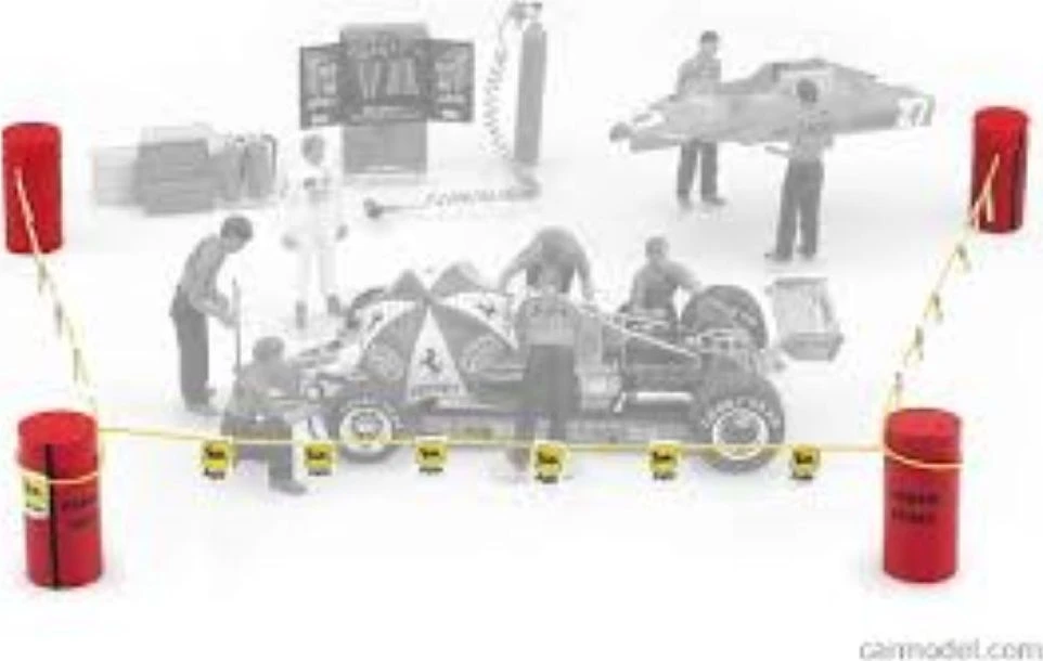 This is the RACING ACCESSORY SET (barrels, ropes and flags) in 1:43 scale by Brumm, Made in Italy.