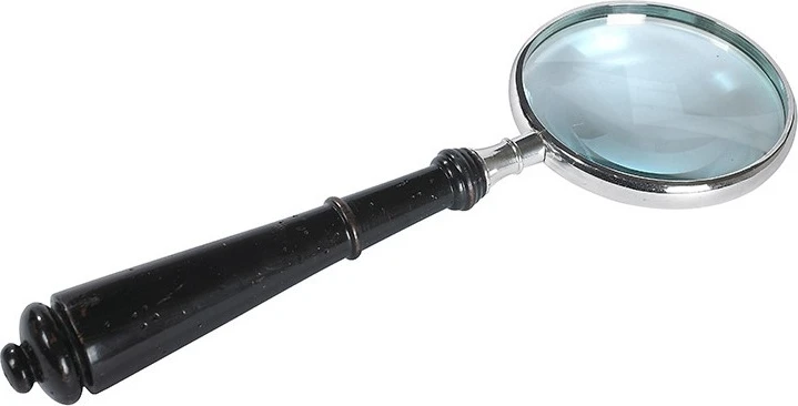 For proverbial fine print and thumbnail-sized road maps. Classic accessory for any coffee table or end table. Silver-plated magnifying glass, French finished rosewood handle.