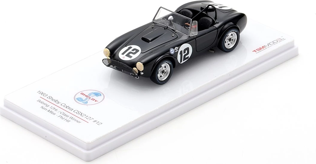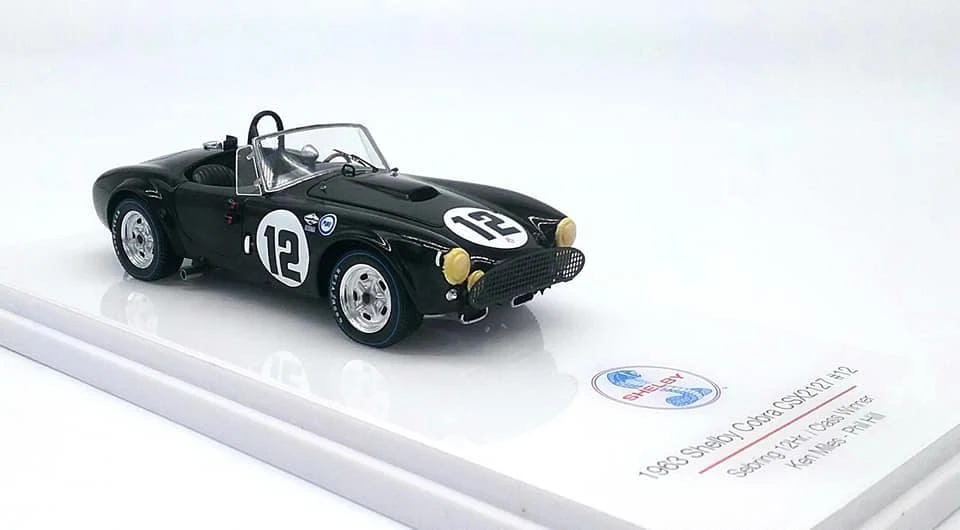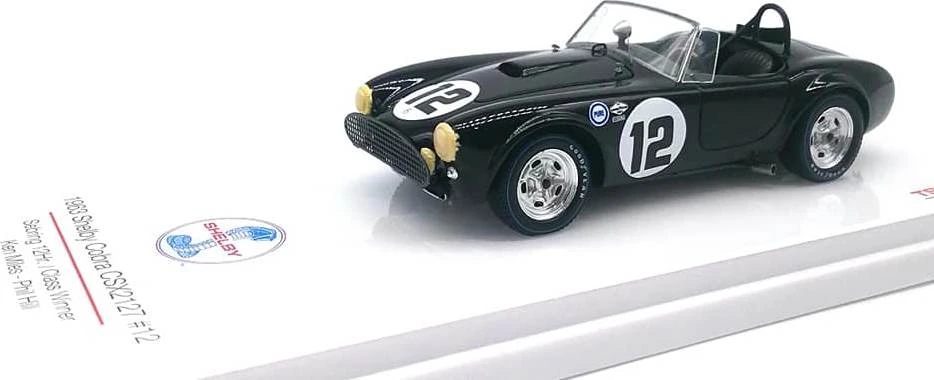 This is the Shelby Cobra CSX2127 #12 1963 Sebring 12 Hrs Class Winner Ken Miles / Phil Hill in 1:43 scale by True Scale Miniatures.
