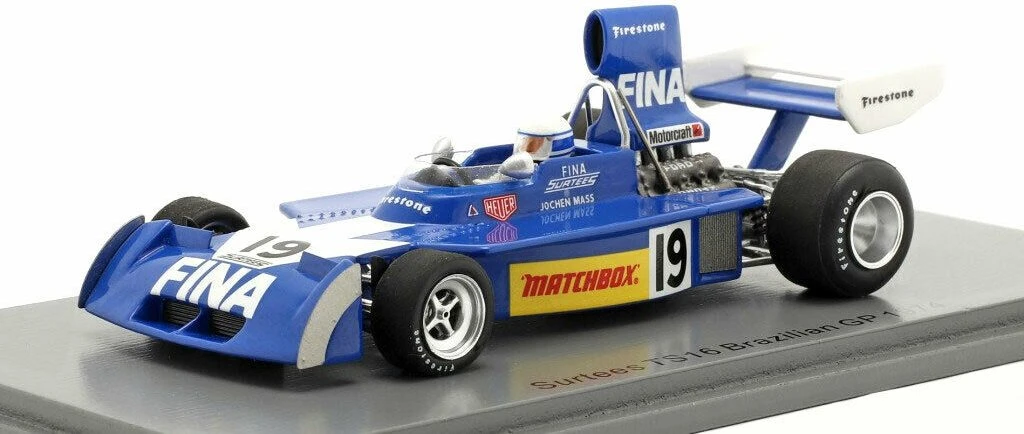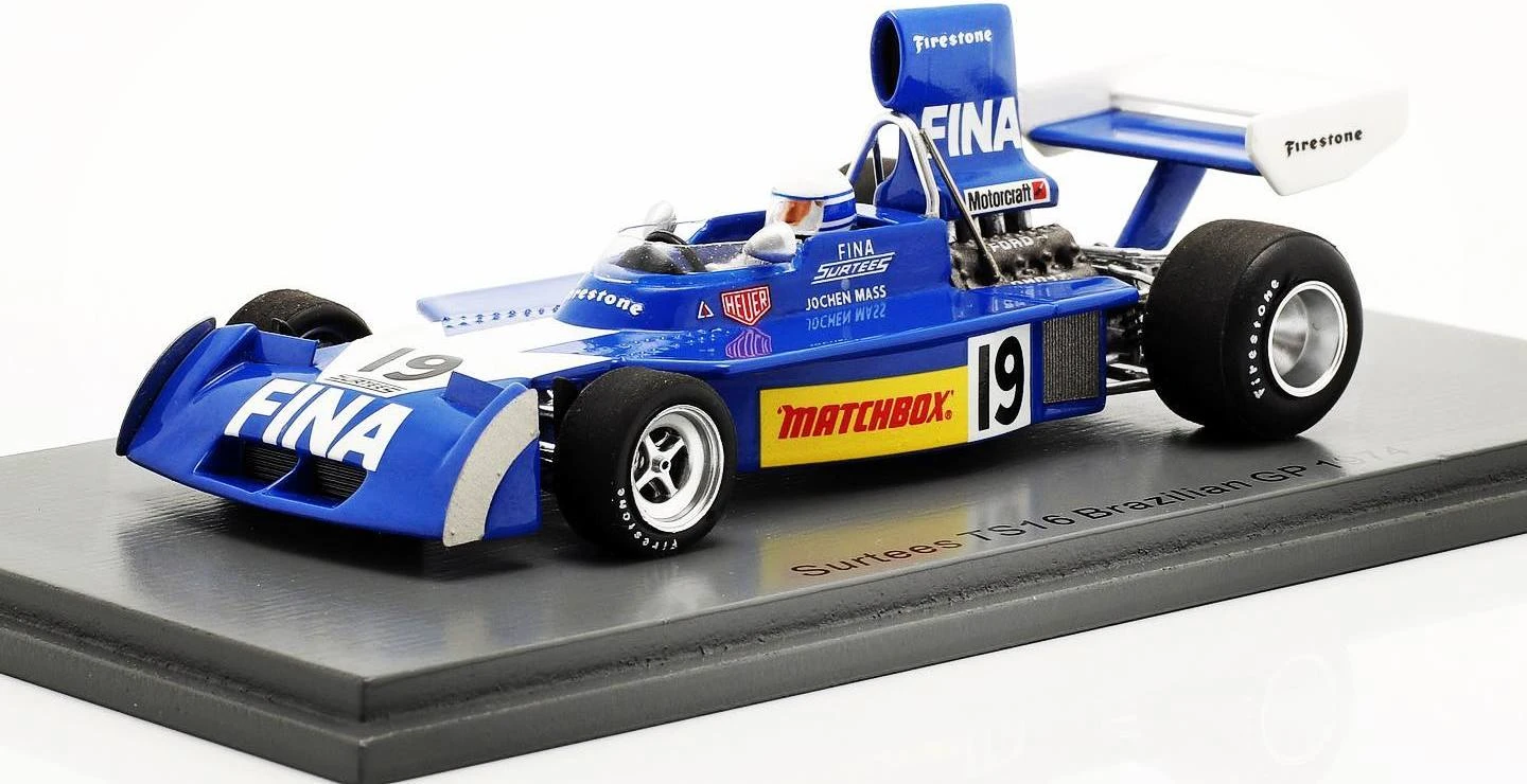 This is the Surtees TS16 No.19 Brazilian GP 1974 Jochen Mass in 1:43 scale by Spark.
