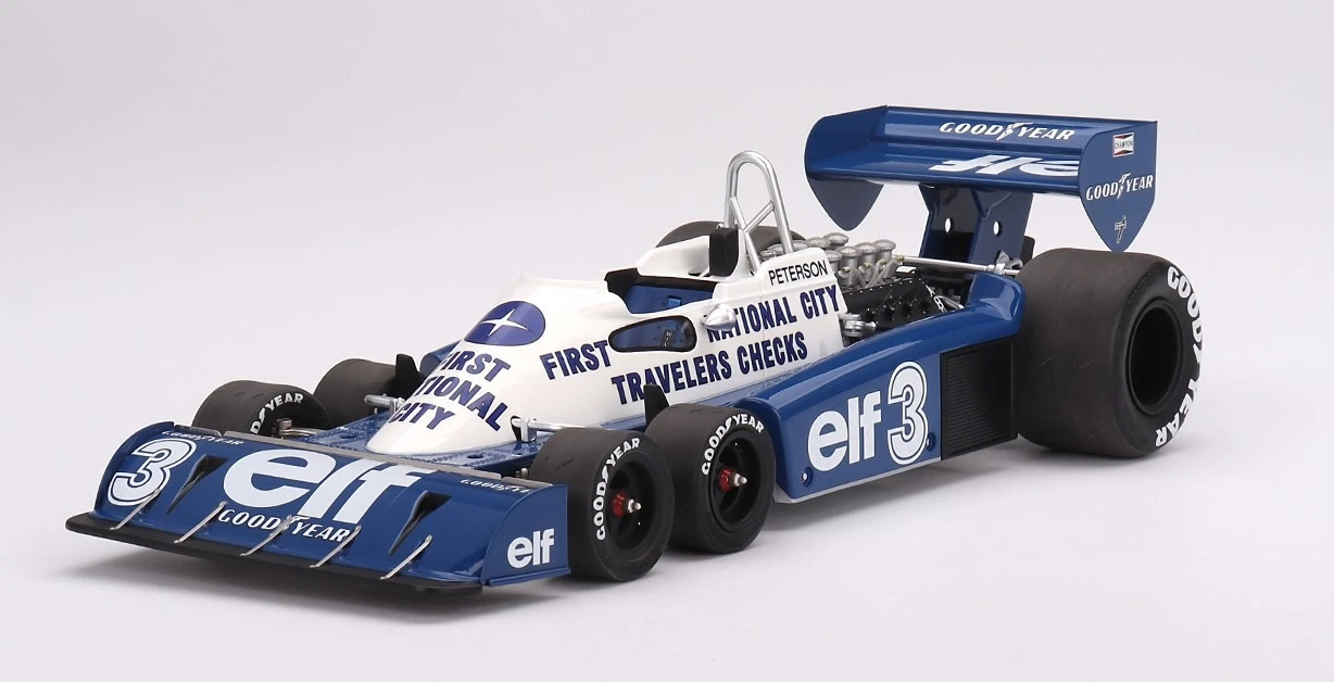 This is the Tyrrell P34 #3 Ronnie Peterson 1977 Monaco Grand Prix in 1:12 scale by True Scale Miniatures.