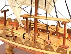 This 15-inch model is handcrafted with the highest quality woods from scratch by master artisans using “plank on frame” construction, just like real boats. Each model takes more than 50 hours to construct and undergoes a demanding quality-control process. Among the details of this boat model: visible planking hull, lines of gold shields along 2 sides of boats, 2 set of wooden oars, detailed stitched sail, metal dragon head, brass nameplate and stand.