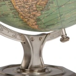 A contemporary classic. The 1920s Weber Costello globe is displayed on a vintage silver stand. Colored gores are applied to the globe core by hand with authentic construction and detail.